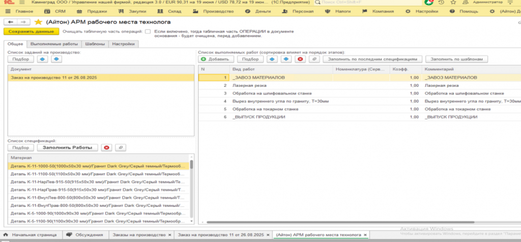 Автоматизация работы технолога в 1С:УНФ для компании по обработке камня | Кейсы внедрения 1С:УНФ | Айтон: внедрение, сопровождение, 1С:УНФ