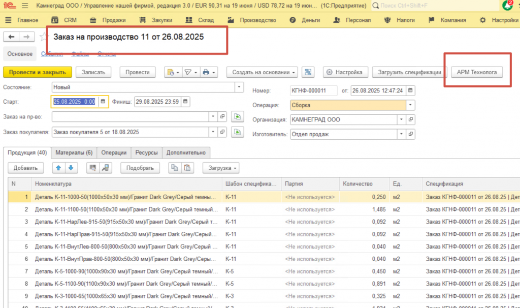 "Камнеград" поставил перед собой задачу оптимизировать производство, снизить затраты и повысить общую эффективность бизнеса. В рамках масштабного проекта перехода с ERP-системы на 1С:УНФ, первым этапом стала автоматизация работы технологов.
